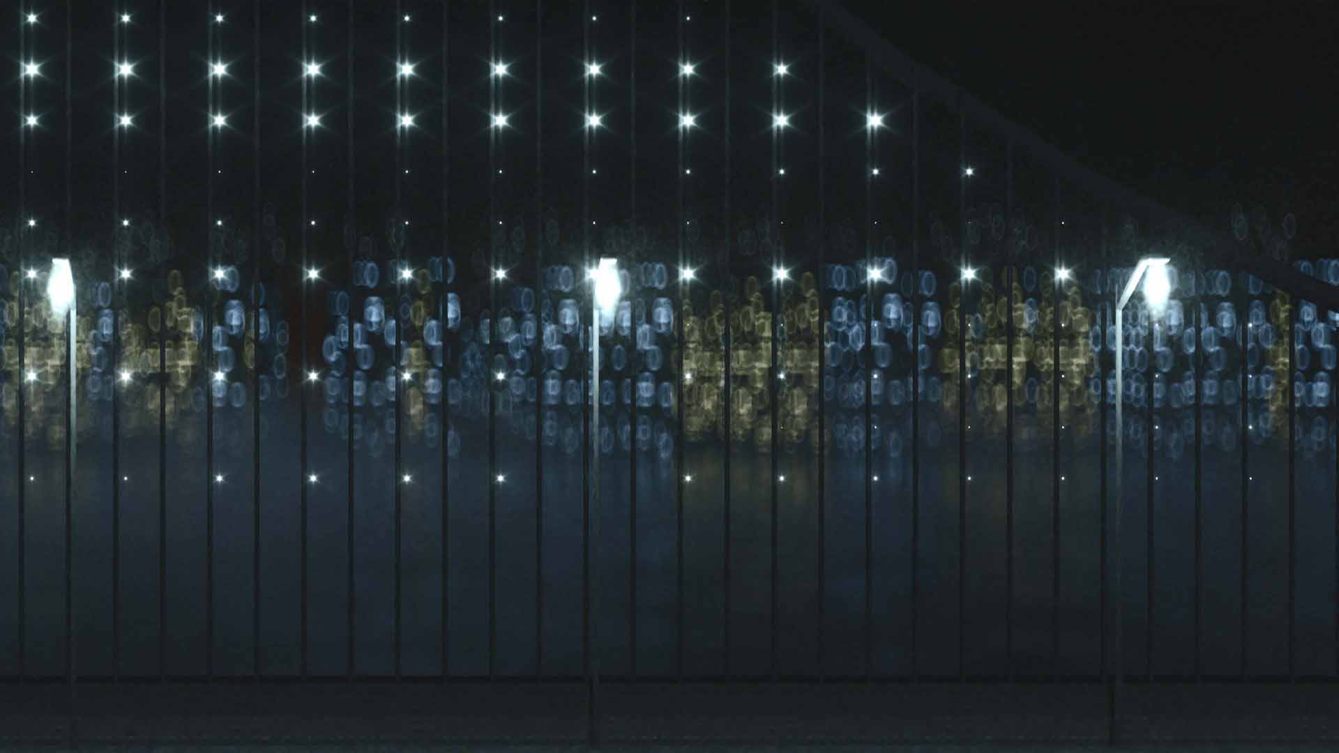 Inspired by artist Leo Villareal and his partnership with Illuminate. BHDM's vision for their black and white city lights themed loop was encompassed by blurred out city bokeh lights, the verticality of the bridge supports and high contrast of dark and light values.